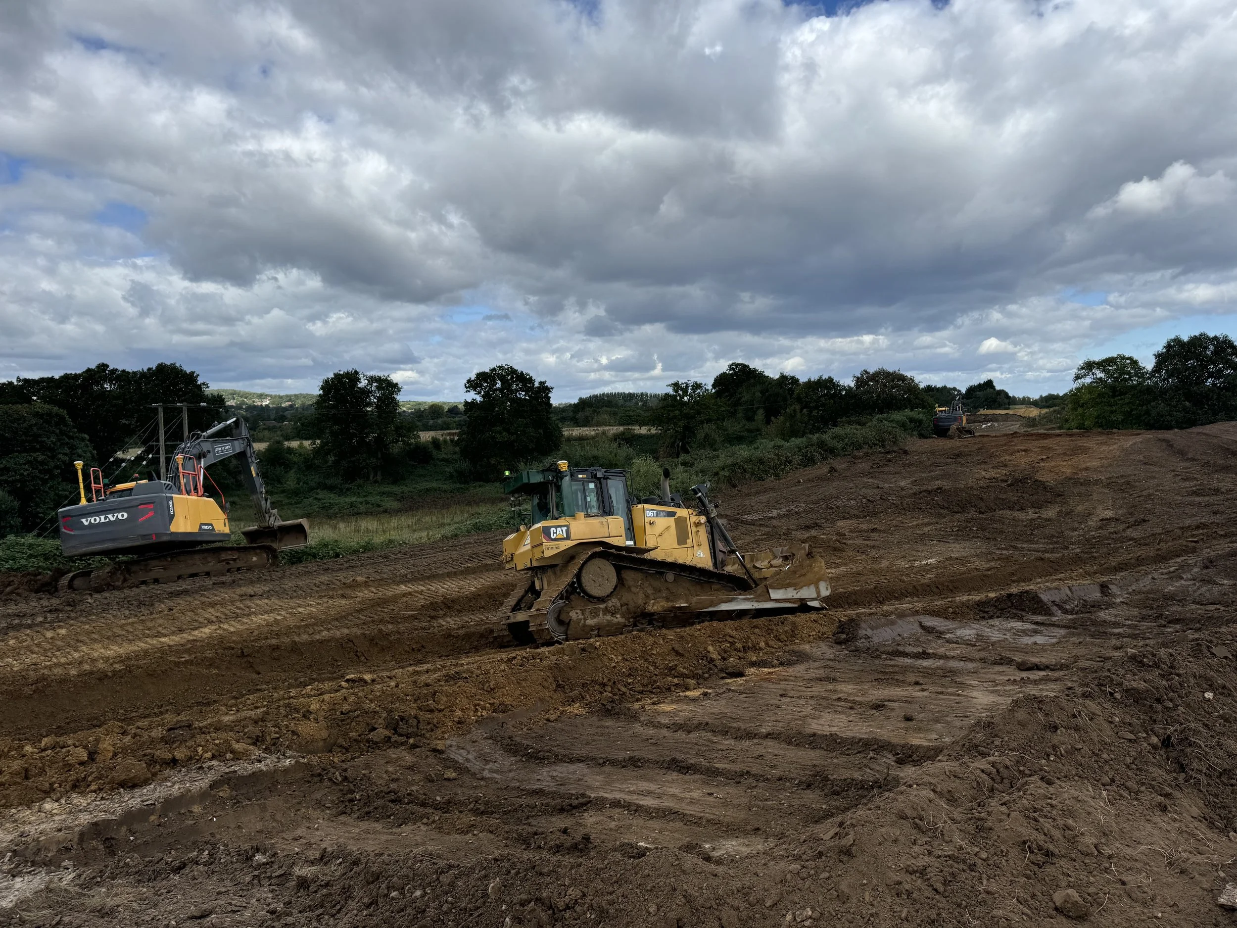 Down To Earth successfully delivered a major Surface Water Management (SWM) scheme designed to connect two landfill areas and improve long‑term environmental resilience. The project began with the topsoil strip of approximately 20,000m², followed by 7,000m³ of cut‑to‑fill earthworks to reprofile the site and establish the required formation levels.